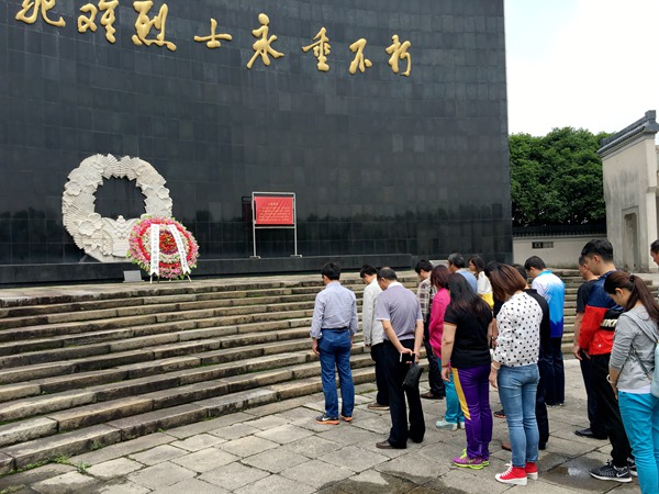 当天上午,参加活动的党员和入党积极分子来到皖南事变烈士陵园,列队向皖南事变纪念墙敬献花篮,并向殉难的革命先烈默哀、三鞠躬,以此表达对革命先烈的崇敬之情。在无名烈士墓前,大家认真听着讲解员的讲解,对国民党不抗日、杀害新四军将士感到愤慨;对新四军将士奋勇杀敌、宁死不屈的大无畏精神表示钦佩和敬仰。