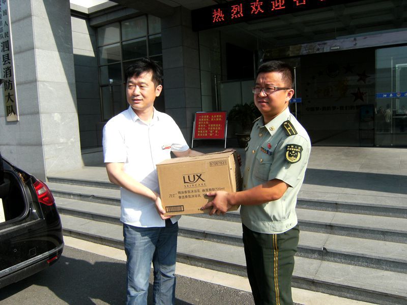 邢厚生一行为消防官兵送去了防暑降温用品,并代表泗县公司向消防官兵致以节日祝贺和诚挚问候,对消防官兵多年来对泗县公司消防安全和经济发展作出的贡献表示衷心感谢。消防大队领导对邢厚生一行的到来表示热烈欢迎,并表示将继续发扬人民军队的优良传统,尽职尽责,确保一方平安。