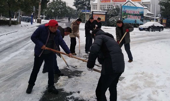 池州市盐业公司党委响应市委、市政府号召,25日、28日连续两天组织党员群众义务上街铲雪,清扫积雪路面。