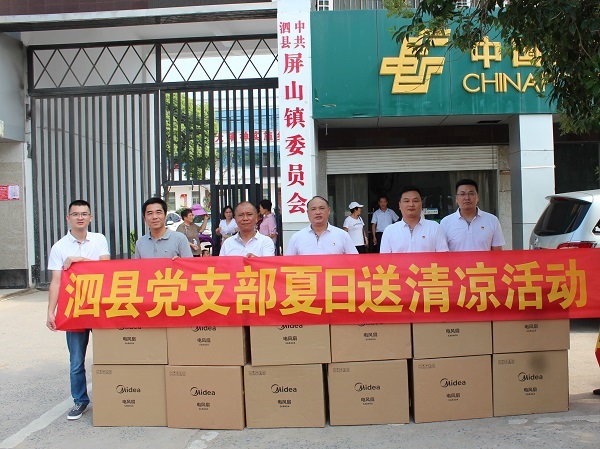一个风扇,一瓶清凉的矿泉水,一句句贴心的问候,恰似夏日里的一缕缕凉风,沁人心脾。8月1日上午9点,烈日炎炎,热气蒸腾,让人倍感炎热,中共安徽盐业房地产开发有限公司泗县党支部书记余海带领公司党员和入党积极分子赴泗县屏山镇开展党建活动。