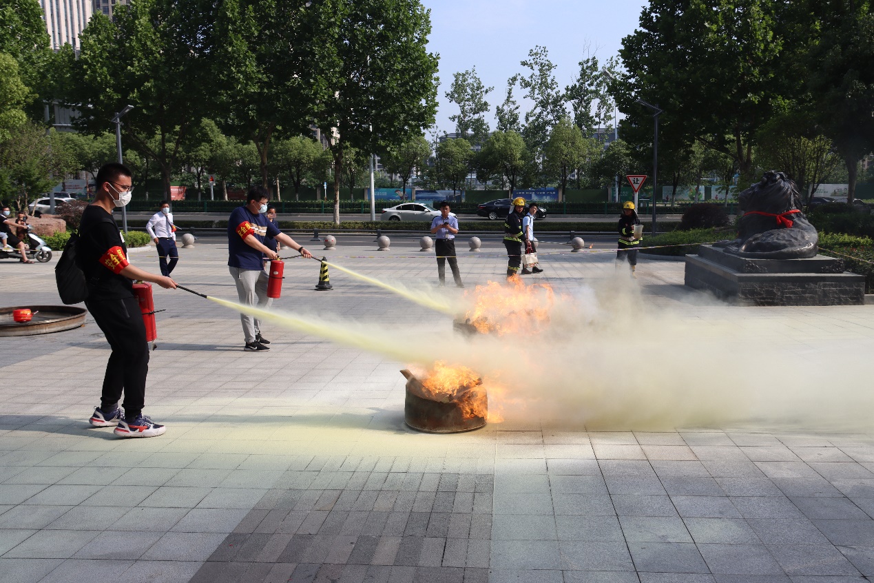 疏散完成后,工作人员现场讲解了办公区域常见火灾发生的规律和特点,以及常见的灭火器类型与扑救方法等,并通过实验的方法演示了泡沫灭火器的运作规律。之后,20余名员工在工作人员的指导下,实际体验了使用灭火器灭火的操作,帮助大家进一步加深了印象。