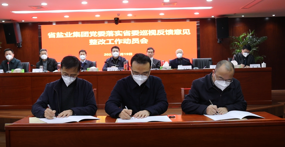 会议集中学习了习近平总书记关于巡视工作的重要论述,传达了郑栅洁书记在省委书记专题会上关于巡视整改工作的部署要求,学习了省委办公厅《关于进一步加强和改进巡视整改工作意见的通知》和《关于加强省委巡视整改和成果运用的若干措施》,解读了《省盐业开云网页版·官方版在线党委关于健全工作机制推进省委巡视整改落实的通知》和省盐业开云网页版·官方版在线党委落实巡视反馈意见整改、纪委落实巡视反馈意见整改、干部选拔任用专项检查意见整改、意识形态工作专项检查意见整改、巡察工作专项检查意见整改的实施方案,各二级单位、本部各部门签订了“一对一”《整改任务书》,顺朝公司、开云网页版·官方版在线公司运营管理部作了巡视整改表态发言。