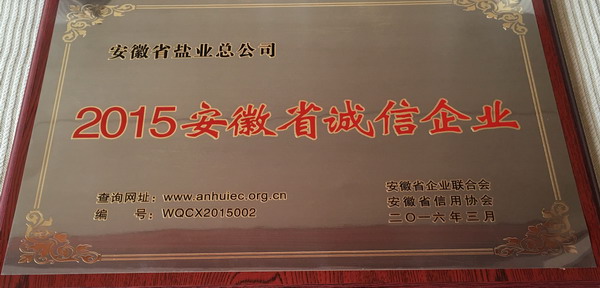 安徽省盐业公司多年来始终以诚信为企业立身之本,重信守诺,践行国企职责,维护食盐市场稳定,确保全省6900万人民的食盐供应和安全,受到社会各界的充分肯定,公司的社会形象和企业品牌得到不断提升。