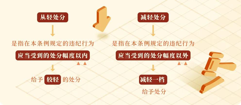 《中国共产党纪律处分条例》规定有下列行为之一的,可以从轻或者减轻处分: (一)主动交代本人应当受到党纪处分的问题。 “主动交代”是指涉嫌违纪的党员在组织谈话函询、初步核实前向组织交代自己的问题,或者在谈话函询、初步核实和立案审查期间交代组织未掌握的问题。 (二)在组织谈话函询、初步核实、立案审查过程中,能够配合核实审查工作,如实说明本人违纪违法事实。 这种情形是指被审查党员在组织谈话函询、初步核实、立案审查过程中,如实说明组织已经掌握的本人违纪违法事实。 (三)检举同案人或者其他人应当受到党纪处分或者法律追究的问题,经查证属实,或者有其他立功表现。 “同案人”指与被审查人共同参与、实施了违纪行为的人,其中既包括党员和党的组织,也包括非党员和非党组织。 “其他人”指没有与被审查人共同参与、实施违纪行为的人,既包括党员和党的组织,也包括非党员和非党组织。 “有其他立功表现”,是指提供其他案件的重要线索,阻止他人违法犯罪活动,协助抓捕其他职务犯罪案件被调查人、犯罪嫌疑人(包括同案犯),为国家挽回损失等情形。 (四)主动挽回损失、消除不良影响或者有效阻止危害结果发生。 “主动挽回损失”,是指违纪党员在其实施的违纪行为已经造成损失的情况下,主动采取有效措施,挽回损失的行为。 “消除不良影响”,是指违纪党员在其违纪行为已经造成不良影响的情况下,主动采取弥补措施,消除影响的行为。 “有效阻止危害结果发生”,是指违纪党员在已着手实施违纪行为,但尚未造成危害结果的情况下,主动放弃继续实施违纪行为,并主动采取积极措施阻止了危害结果的发生。 (五)主动上交或者退赔违纪所得。 这种情形是指主动将违纪所得上交组织。不包括将违纪所得退回送礼人等情形。 (六)党内法规规定的其他从轻或者减轻处分情形。