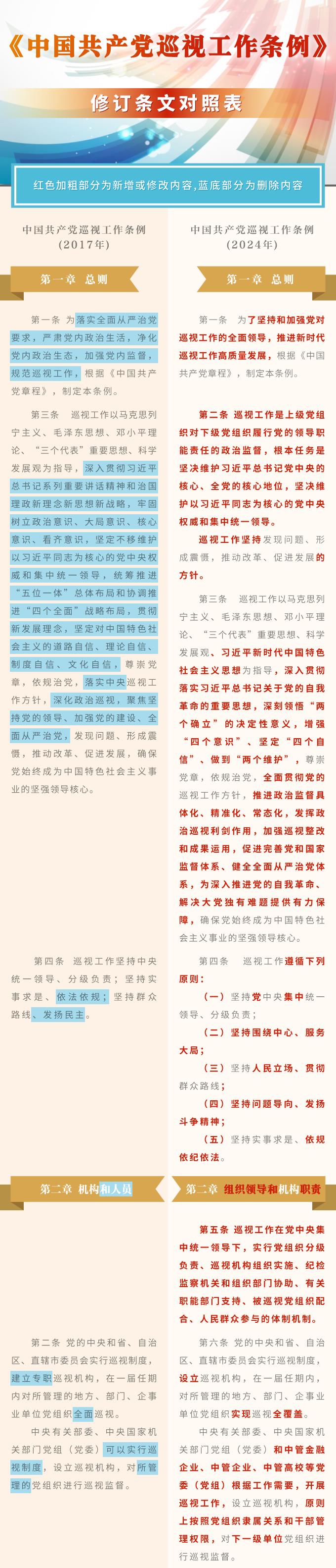 《中国共产党巡视工作条例》修订条文对照表