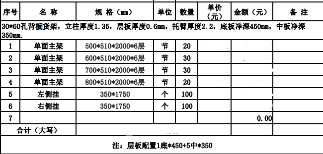 1.采购规模标准:100个货架。
