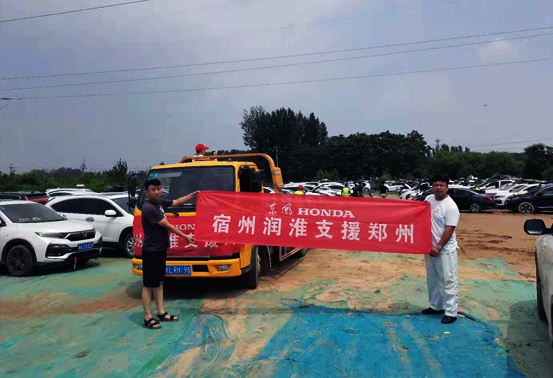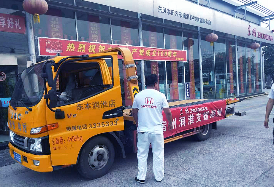 郑州水灾牵动着每一名国人的心,在得知郑州市众多车辆遇水抛锚堵塞路面、阻碍交通,急需畅通道路救援后,宿州润淮东本4S店在弘德公司支持下第一时间与灾区方面取得联系,在经过高效的对接工作后,立即组织了一支由四台施救车辆组成的抢险救援队,安排公司车间主任李楠带队,星夜奔赴灾区,火速驰援!救援车队当晚抵达郑州灾区后,并未进行修整,旋即投入到紧张的救援工作中去。灾区险情千变万化,作业环境尤为艰苦,作为宿州润淮团队的精英干将,我救援车队成员,牢记国企使命,发扬不怕苦、不怕累精神,风餐露宿,带着一腔热血夜以继日地进行着抢险施救工作。截止目前,我救援车队已成功施救车辆110余台,有效缓解了道路堵塞状况,为救援争取宝贵时间。