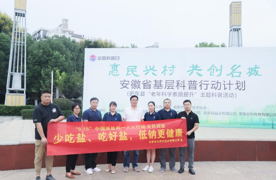 在活动现场,来自合肥市公司、肥东县公司的科普志愿者向群众科普食盐知识,宣传科学补碘、健康减盐科学理念,推广中盐牌绿色低钠盐。